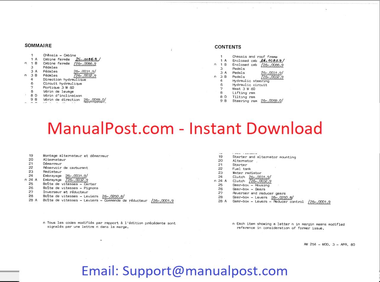 Bobcat Sambron Forklift AM254 Spare Parts Catalog_551879