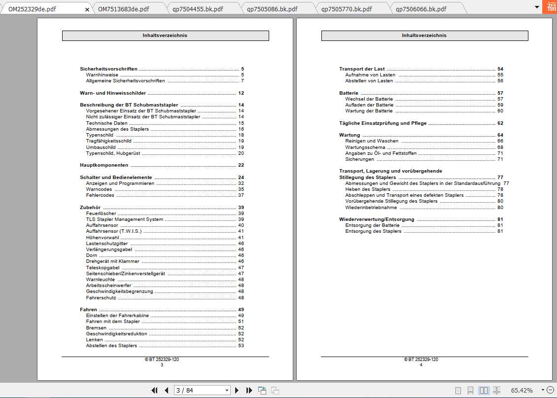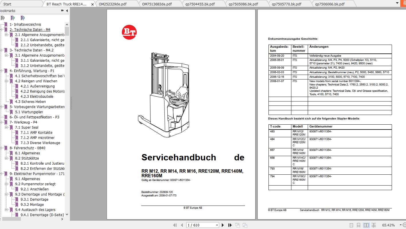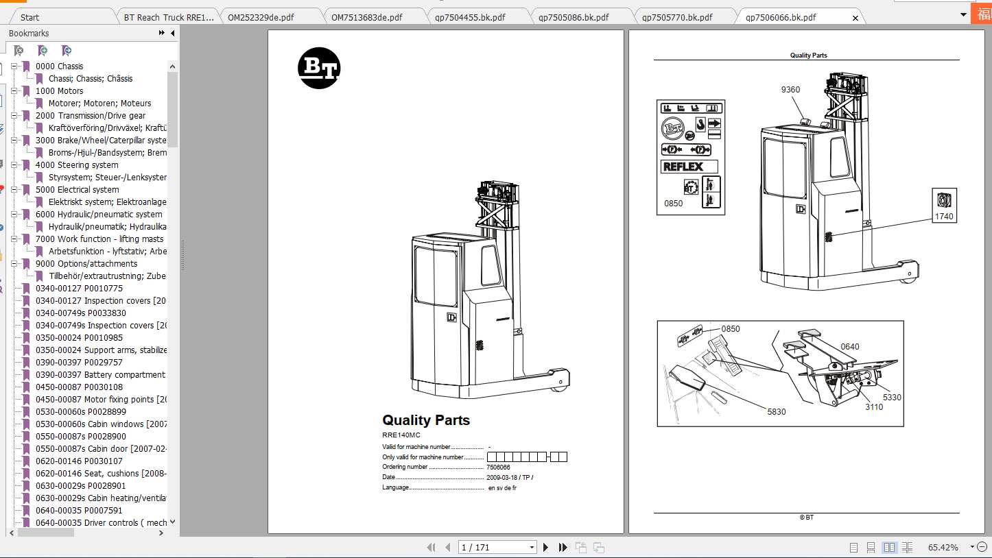 BT Reach Truck RRE140MC Spare Parts Catalog, Operator & Service Manual