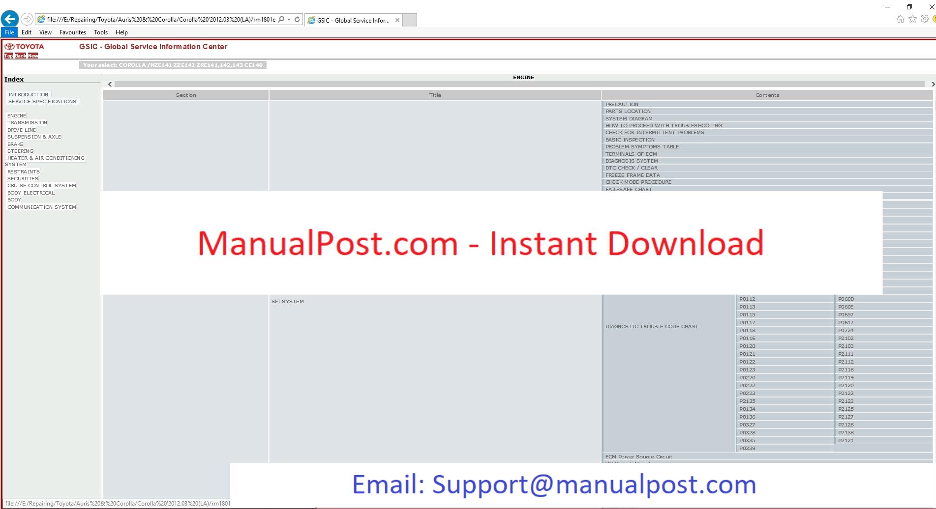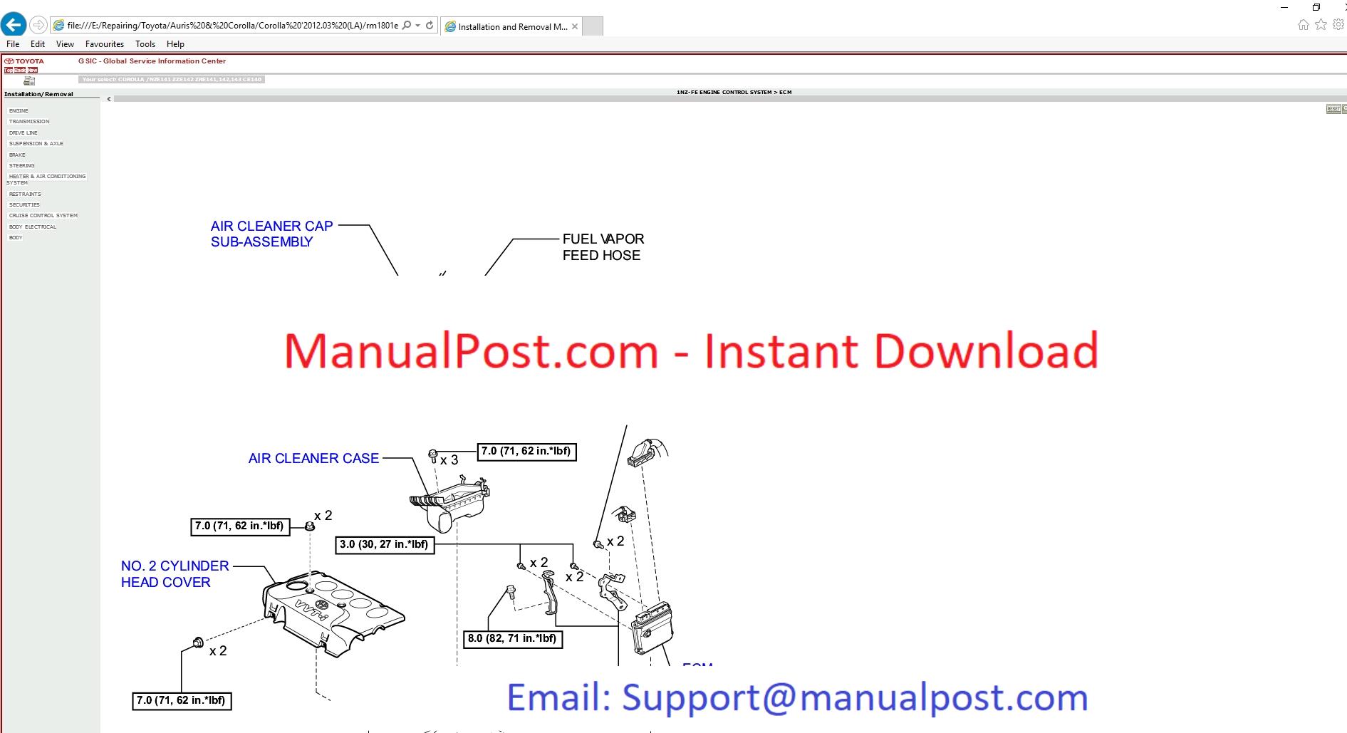 Model: Toyota Corolla ‘2012.03 (LA) GSIC Workshop Manual