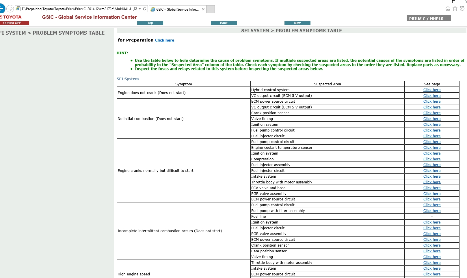 Model: Toyota Prius C ‘2014.12 GSIC Workshop Manual