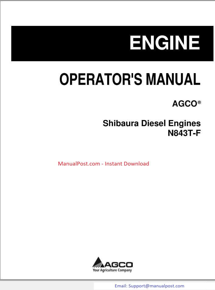 AGCO Shibaura Diesel Engines N843T-F N844L-F N844LT Operator & Service Manual