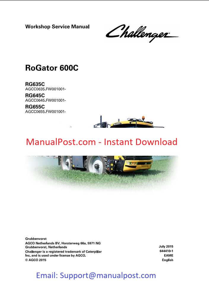 Challenger EU Applicators RG635C RG645C RG655C RoGator Workshop Service Manual