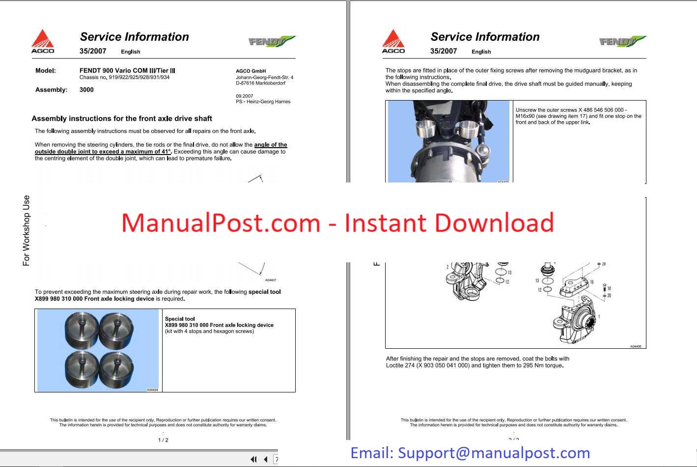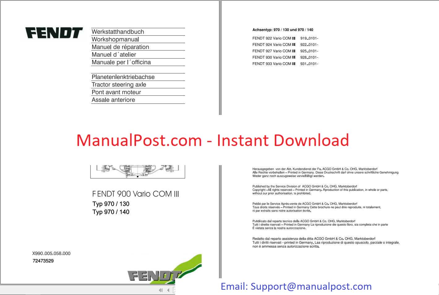 Fendt 900 Vario COM III Tractors DANA Steer Axle Workshop Manual_72473529