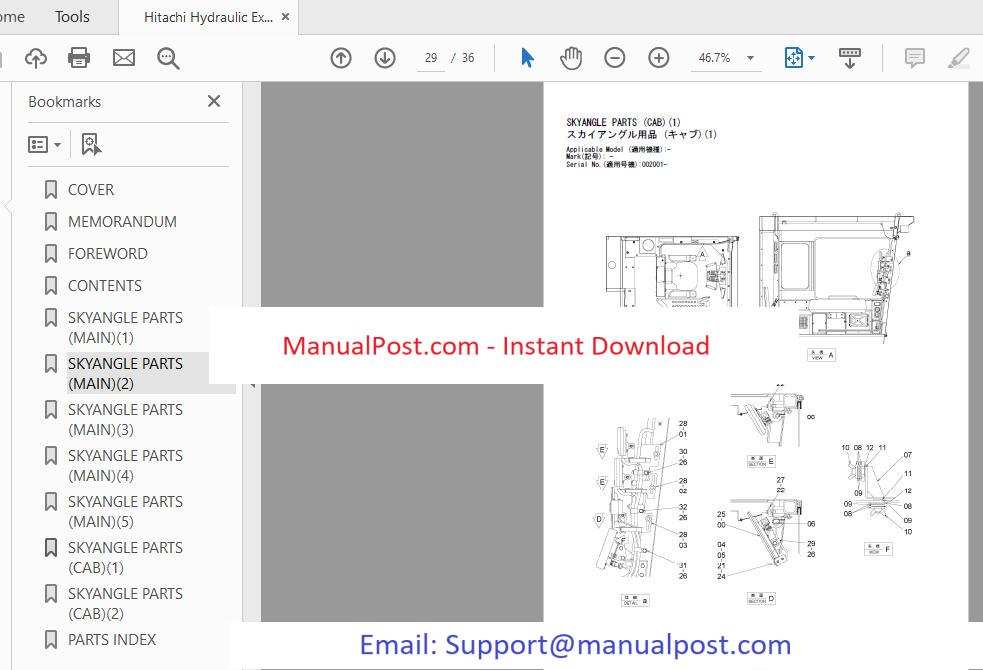 Hitachi Hydraulic Excavator ZX135US-6 ZX135USK-6 Parts Catalog EN JP