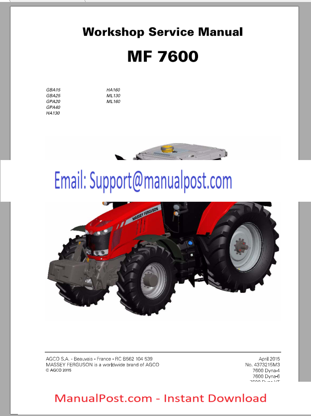 Model: Massey Ferguson Tractor MF 7614 7615 7616 7618 7619 7620 7622 7624 7626