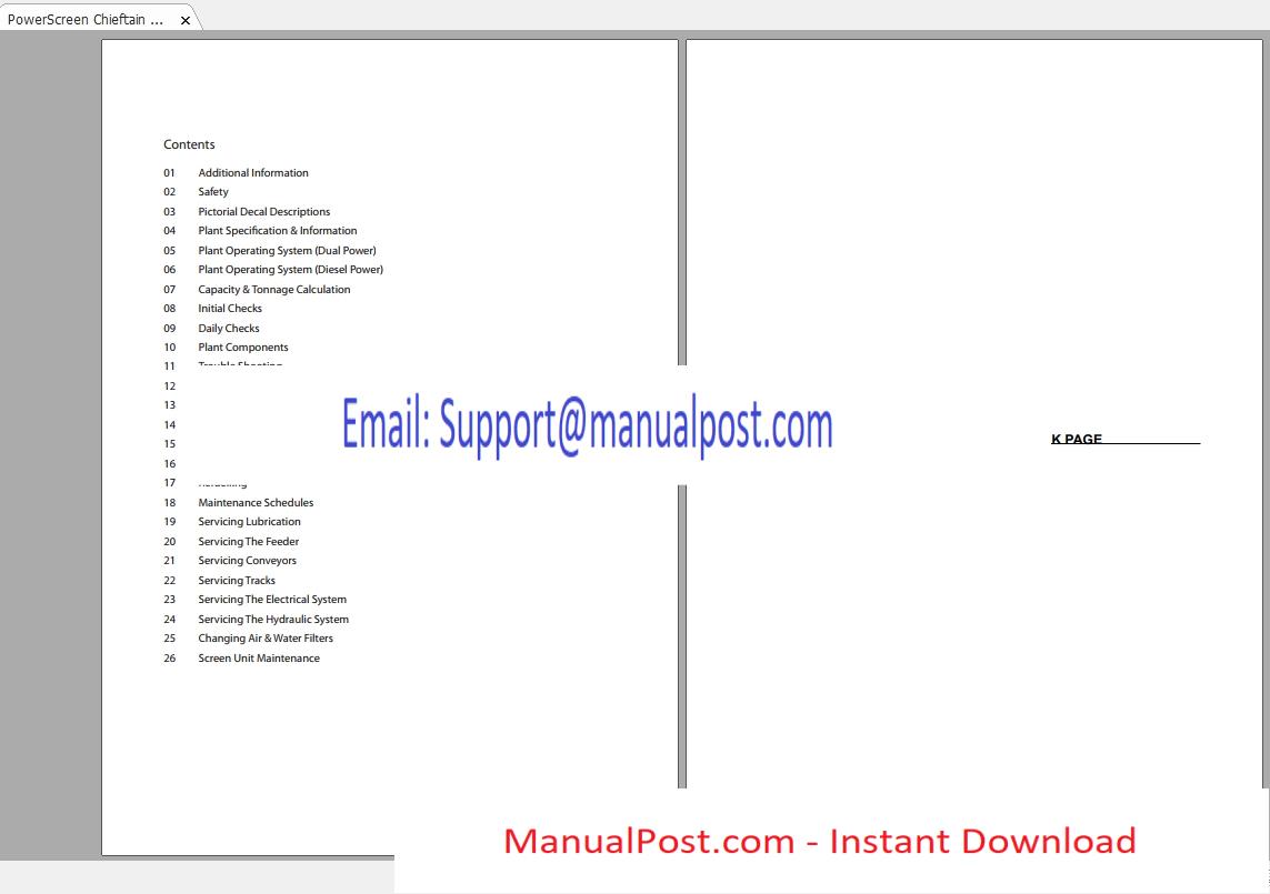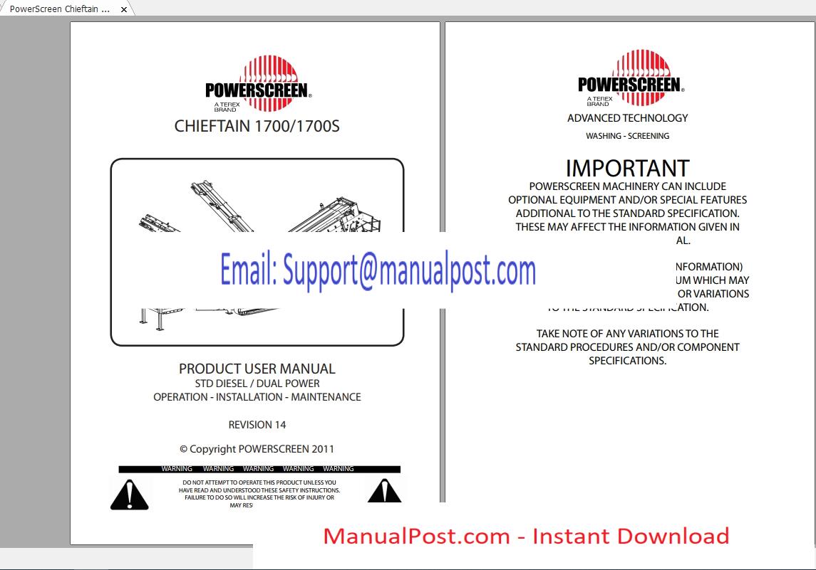 PowerScreen Chieftain 1700,1700S Operation, Installation and Maintenance Manual