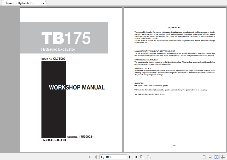Takeuchi Hydraulic Excavator TB175 Workshop Manual_CL7E002