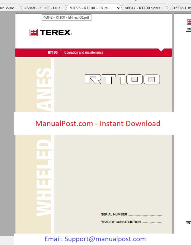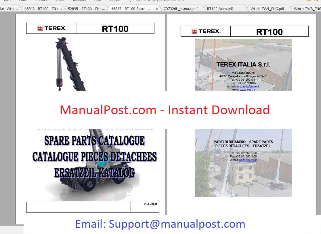 Terex Rough Terrain Cranes RT100 Spare Parts, Electric Diagram & Hydraulics